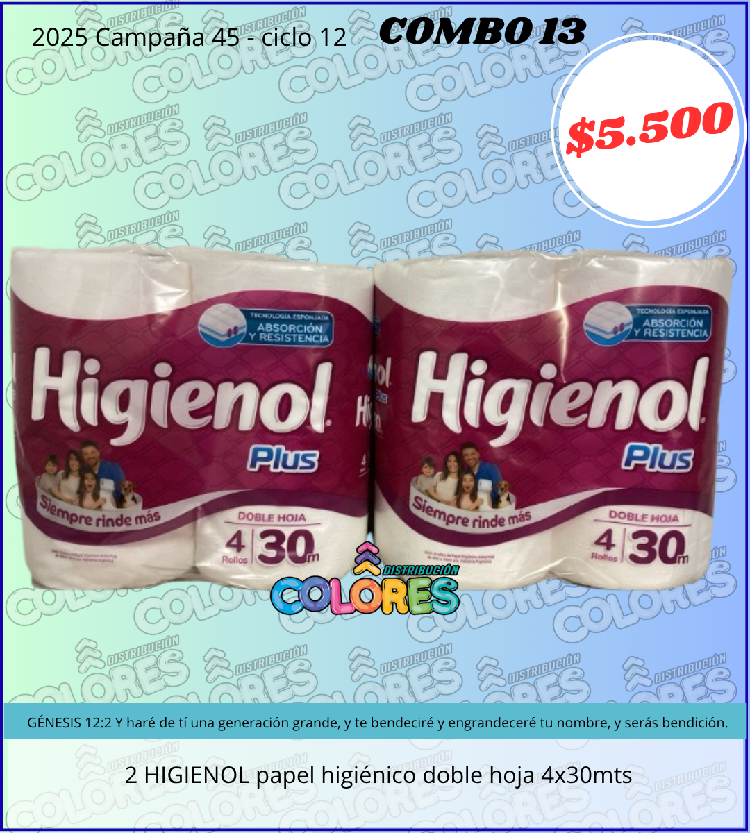 COMBO 13 – 2 HIGIENOL PAPEL HIGIÉNICO DOBLE HOJA 4x30mts