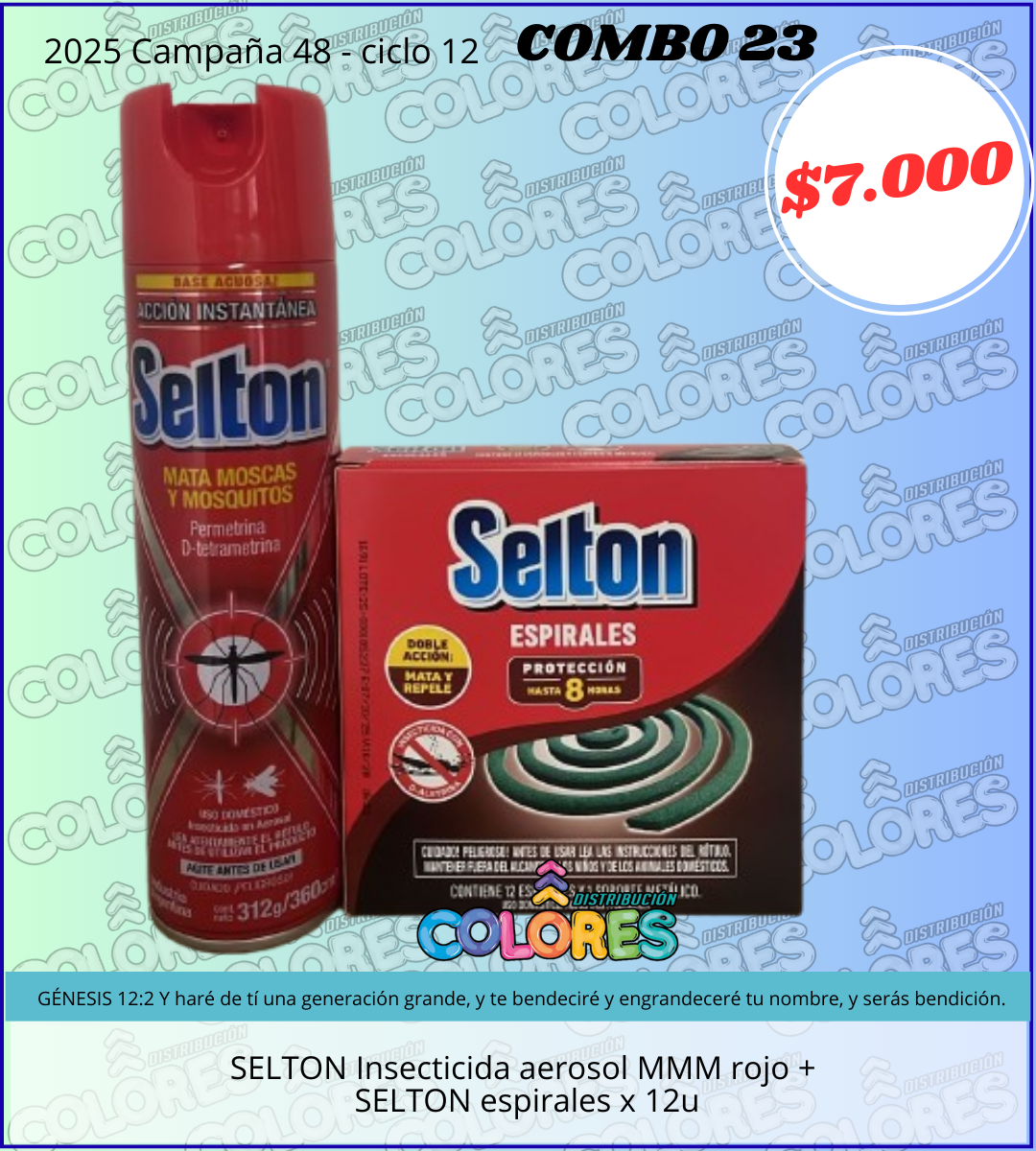 COMBO 23 – SELTON INSECTICIDA AEROSOL MMM ROJO + SELTON ESPIRALES x12u