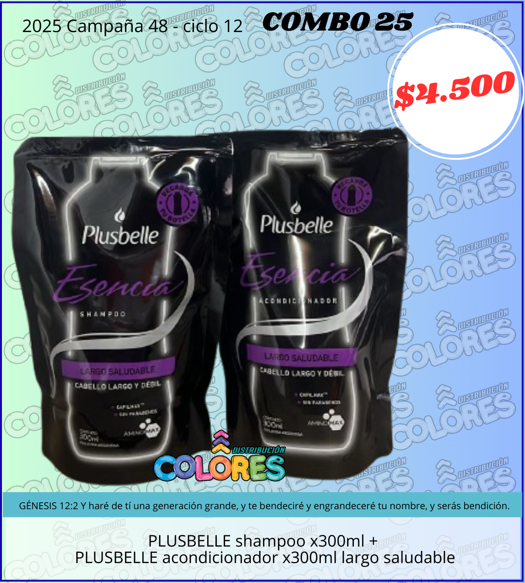 COMBO 25 – PLUSBELLE SHAMPOO x300ml + PLUSBELLE ACONDICIONADOR x300ml SALUDABLE