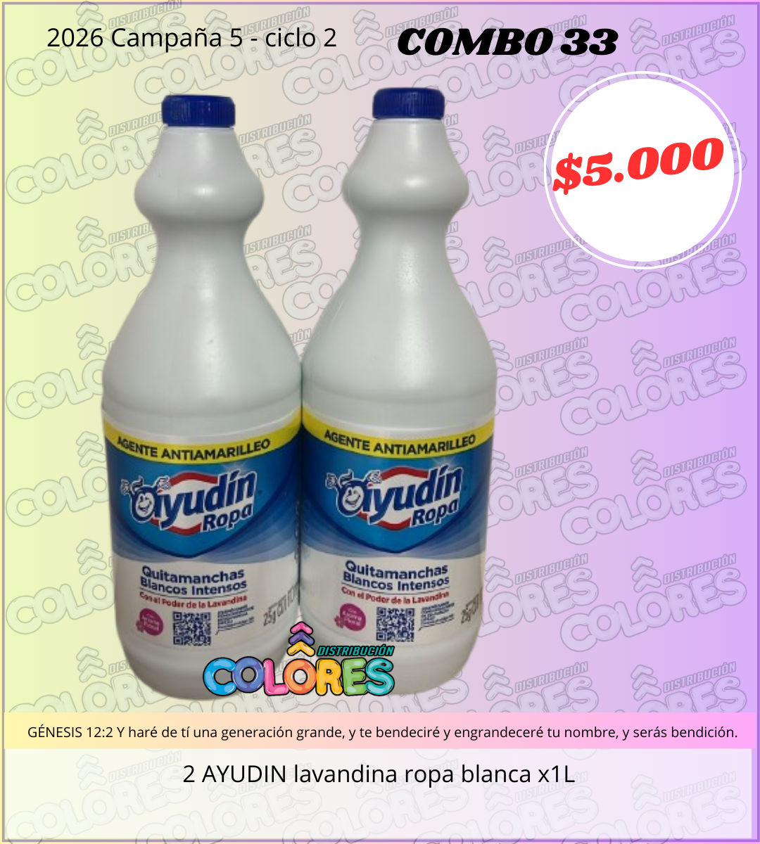 COMBO 33 – 2 AYUDIN LAVANDINA ROPA BLANCA x1L