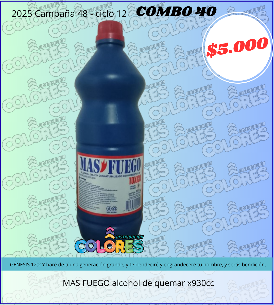 COMBO 40 – MAS FUEGO ALCOHOL DE QUEMAR x930cc