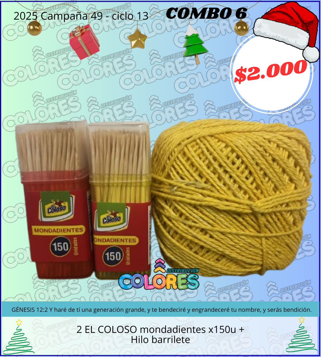COMBO 6 – 2 EL COLOSO MONDADIENTES x150u + HILO BARRILETE