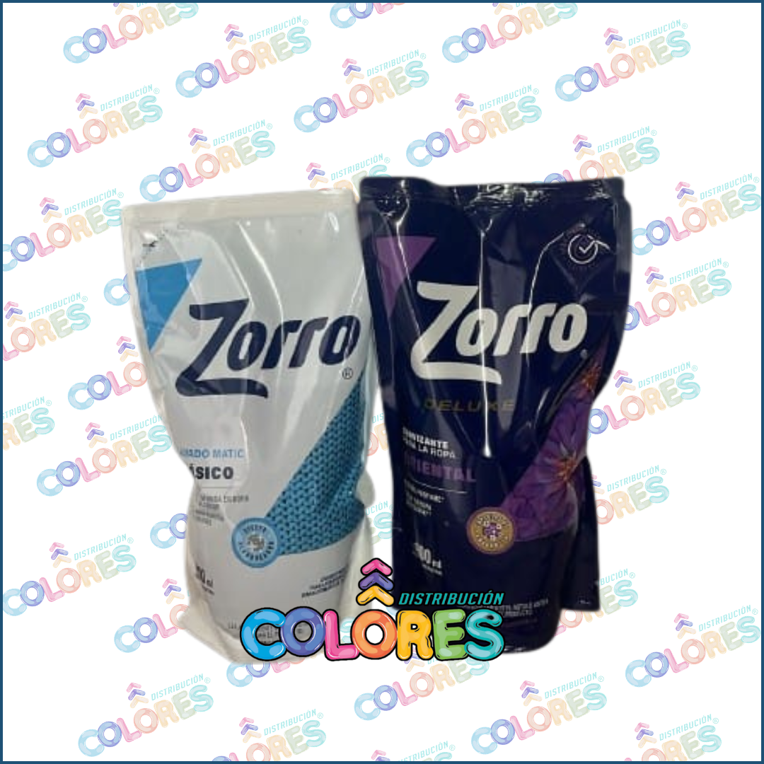 COMBO 7 – ZORRO JABÓN LÍQUIDO x800ml CLÁSICO + ZORRO SUAVIZANTE x900ml ORIENTAL