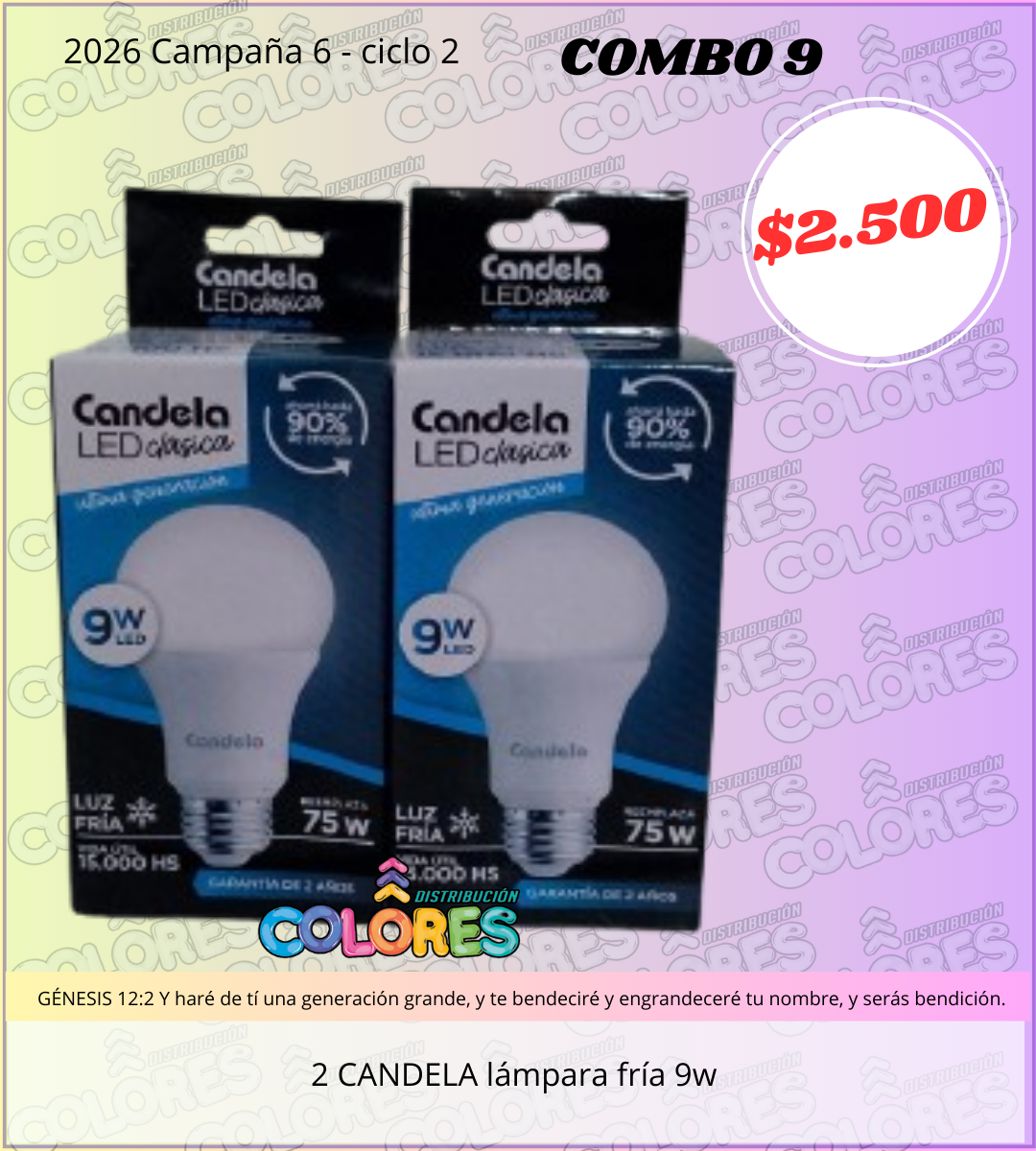 COMBO 9 – 2 CANDELA LÁMPARA FRÍA 9W