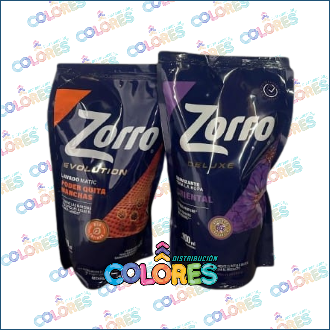 COMBO 9 – ZORRO JABÓN LÍQUIDO x800ml EVOLUTION + ZORRO SUAVIZANTE x900ml ORIENTAL